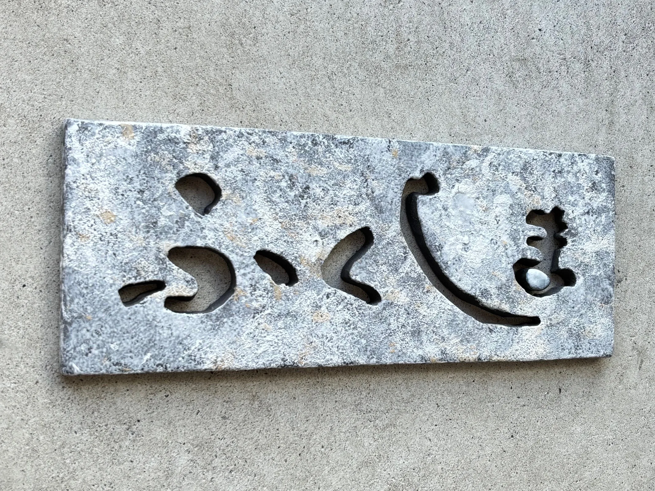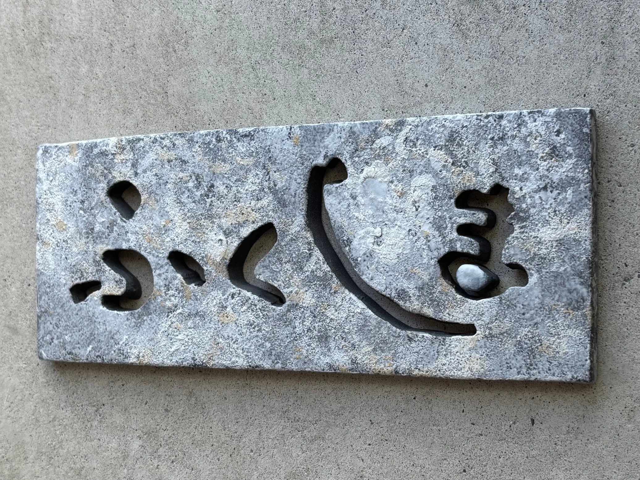 陶板のくり抜きによってホワイトビスケットのような粒立ち感と陶器のやわらかさを表現した表札です。