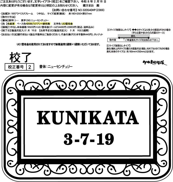 320550 田畑様 j55陶板表札 カイモノカゴ